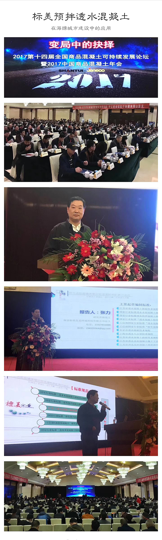 【變局中的抉擇-混凝土行業(yè)的轉(zhuǎn)型升級(jí)之道!】2017第14屆全國(guó)商品混凝土可持續(xù)發(fā)展論壇暨2017中國(guó)商品混凝土年會(huì)11月5--6號(hào)在山西臨汾召開(kāi)。標(biāo)美應(yīng)邀作“預(yù)拌透水混凝土在海綿城市建設(shè)中的應(yīng)用”專(zhuān)家主題報(bào)告,破解了困擾眾多商品混凝土攪拌站預(yù)拌透水混凝土在海綿城市建設(shè)中應(yīng)用的難題,反響熱烈。