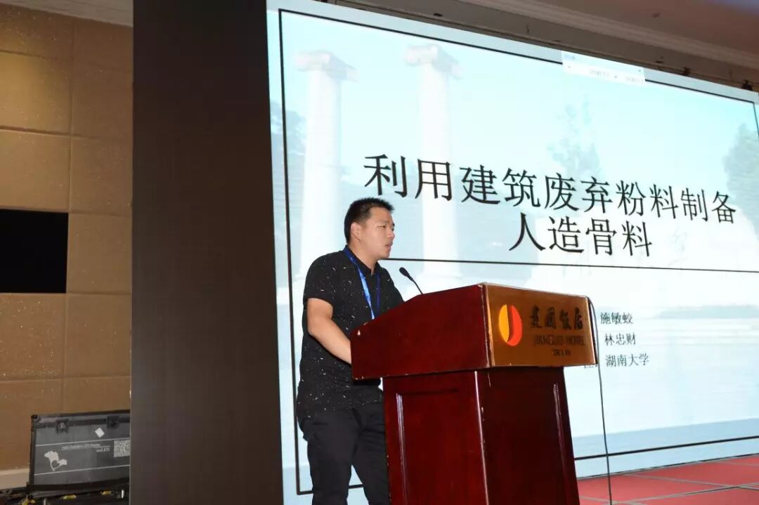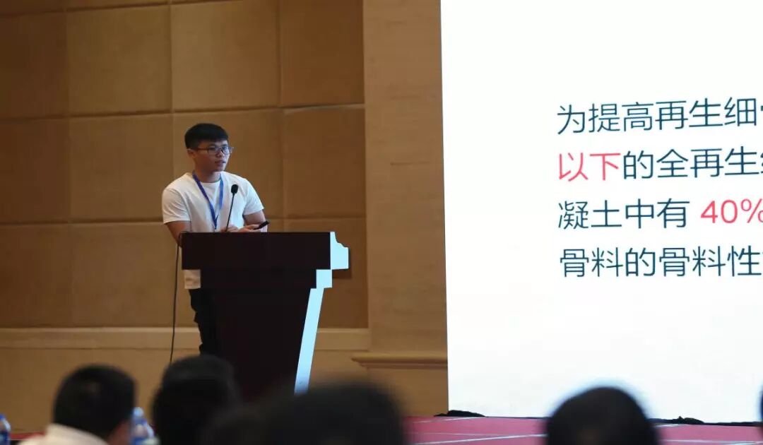 湖南大學林忠財教授課題組的施敏蛟同學報告的主題為“利用建筑廢棄料再生微粉制備人造骨料”。該研究通過造粒技術將收集起來的建筑廢棄粉料制備成可再生人造骨料,并利用碳化技術,對骨料進行后期強化,緩解了快速膨脹的固體廢棄物對環境的壓力。