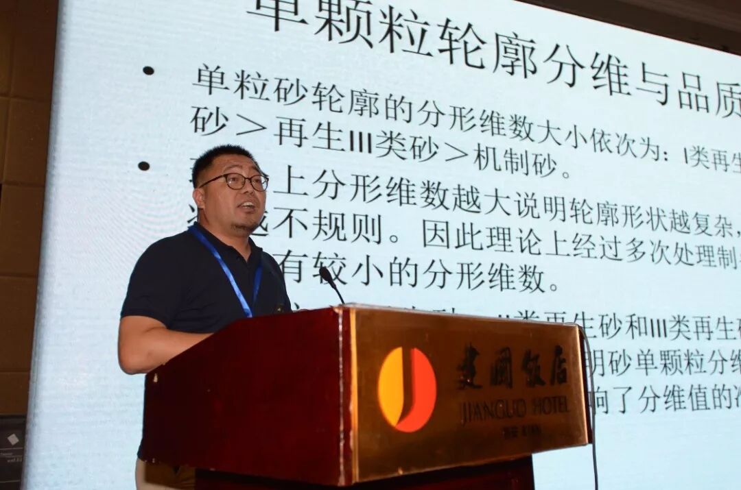 青島理工大學大學高嵩副教授作了題為“再生細骨料品質的分形學特征研究”的報告。介紹了利用分形維數方法對再生砂及利用其制備的再生砂漿的綜合性能進行量化評價的研究工作。研究結果證實再生砂粒群輪廓具備較強的分形學特征,利用再生砂制備的再生砌筑砂漿的性能指標體,也現出與分形維數值相一致的趨勢。