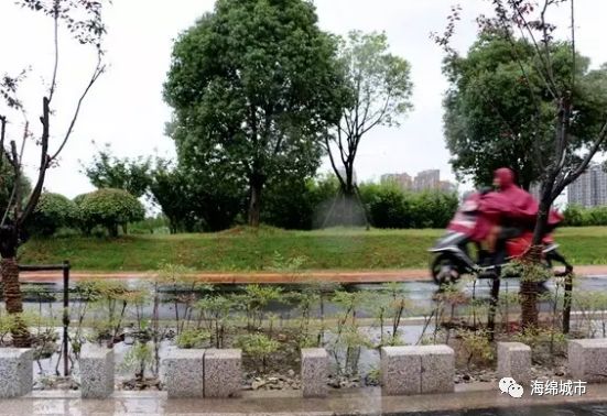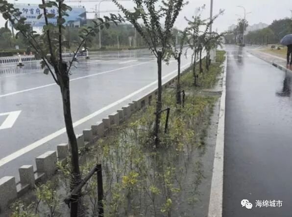 除了道路滲透,雨量大時,多余的雨水會從溢流口流向兩旁的綠化帶,再經過植草溝、雨水花園等海綿設施的滯留和凈化,流入河流、湖泊等水體,或流入人工調蓄池收集起來,待需要時再加以利用。